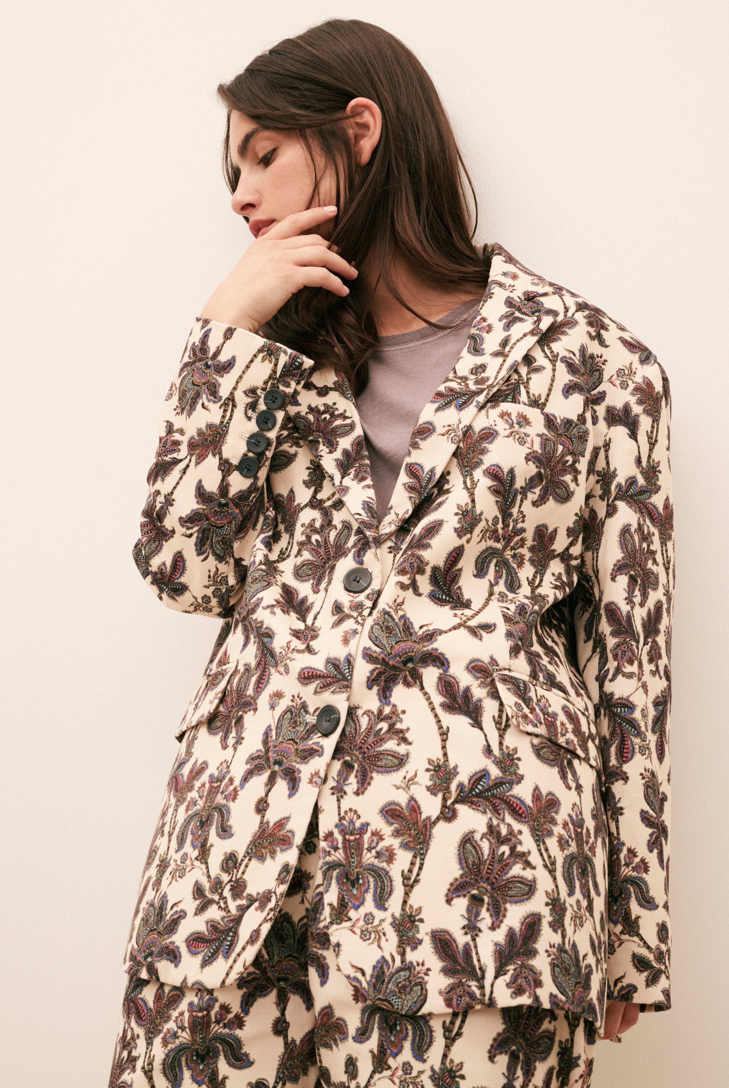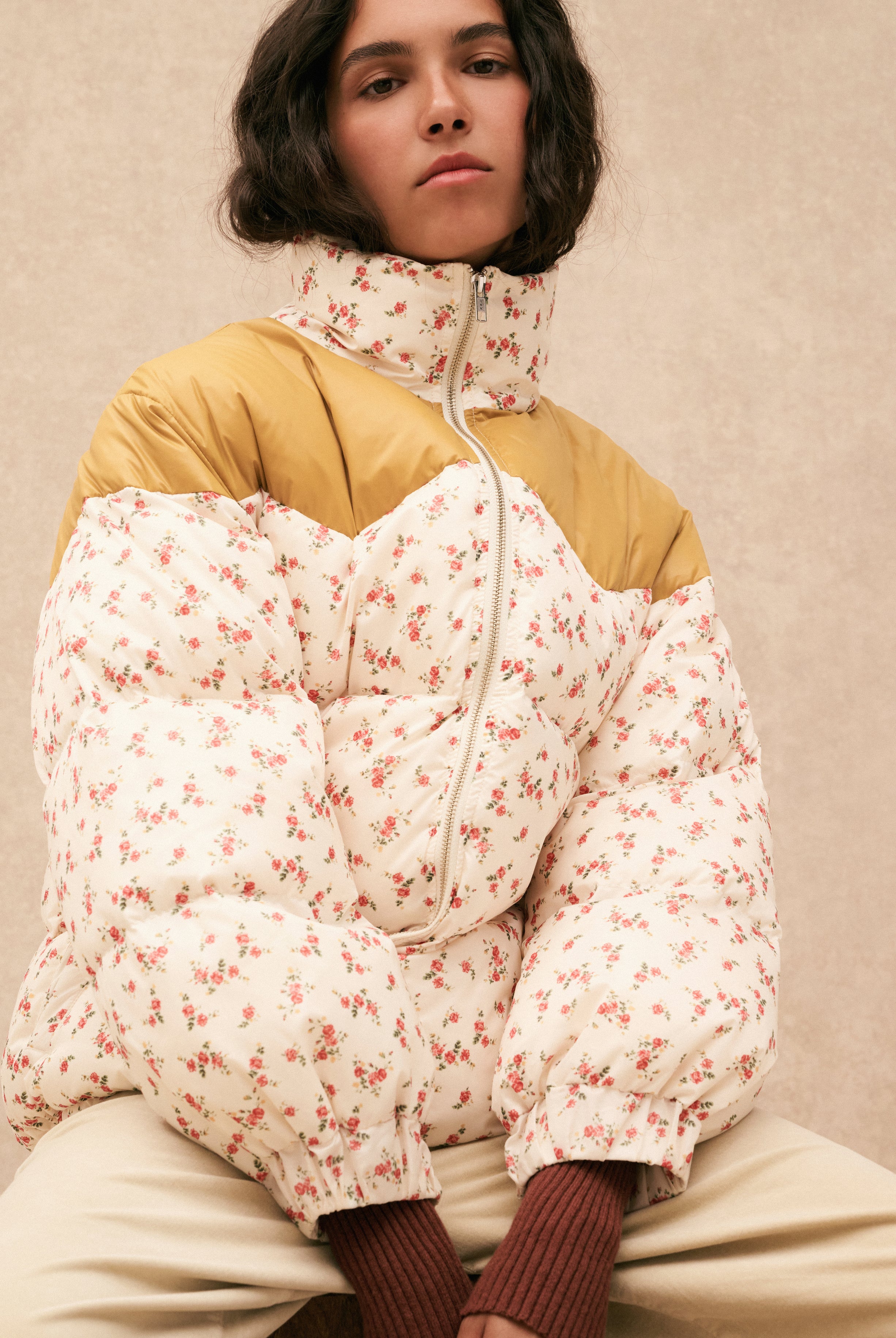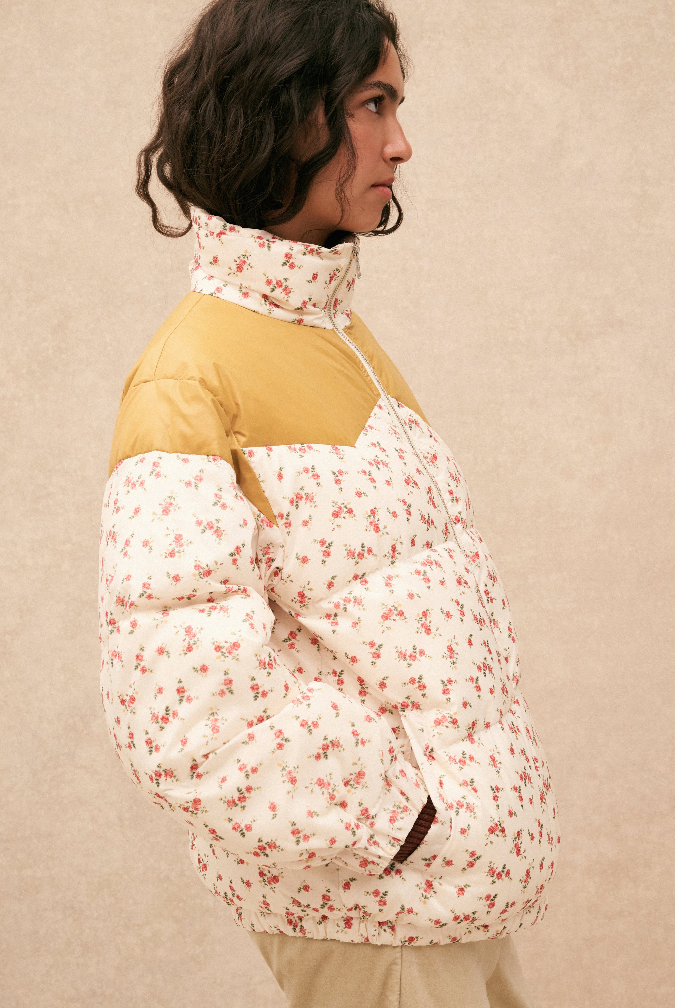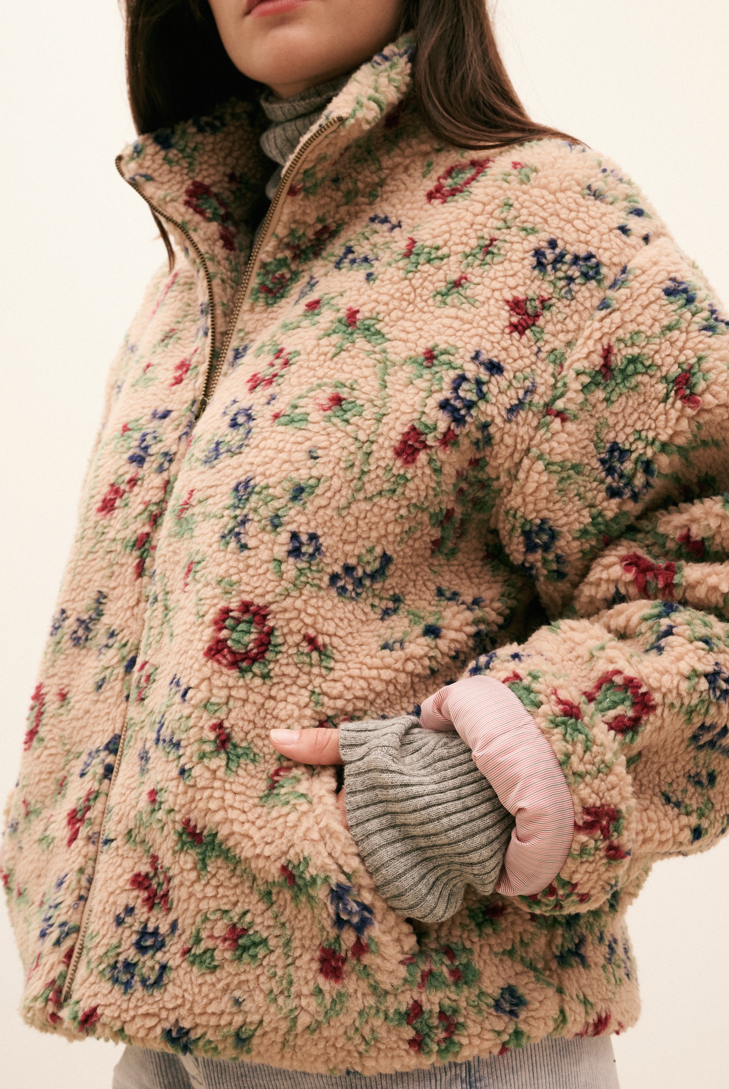 Une pièce inspirée des paysages balayés par le vent, qui capture l’esprit HOD et promet un confort absolu. Son effet lainé et ses fleurs colorées réchauffent les jours d’hiver, sans rien sacrifier à l’allure. Sherpa fleuri, volume généreux et chaleur enveloppante: le blouson Esther s’impose comme une évidence.