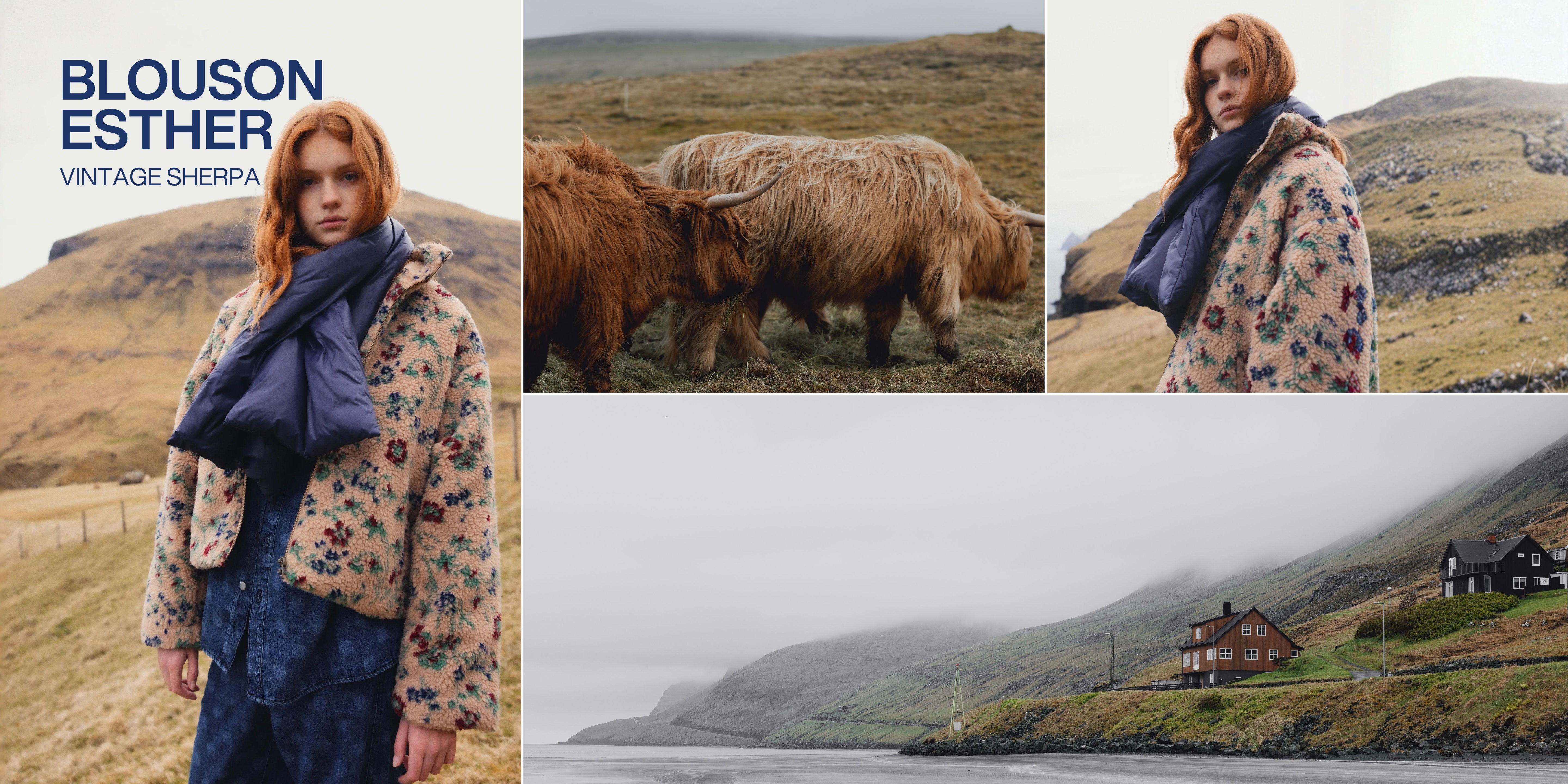 Une pièce inspirée des paysages balayés par le vent, qui capture l’esprit HOD et promet un confort absolu. Son effet lainé et ses fleurs colorées réchauffent les jours d’hiver, sans rien sacrifier à l’allure. Sherpa fleuri, volume généreux et chaleur enveloppante: le blouson Esther s’impose comme une évidence.